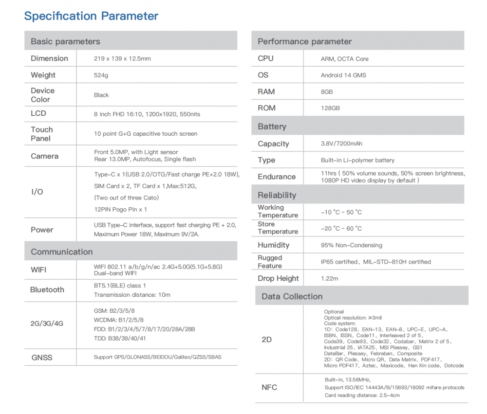 ·Barcode Scanning (Optional) + NFC for diverse data collection needs